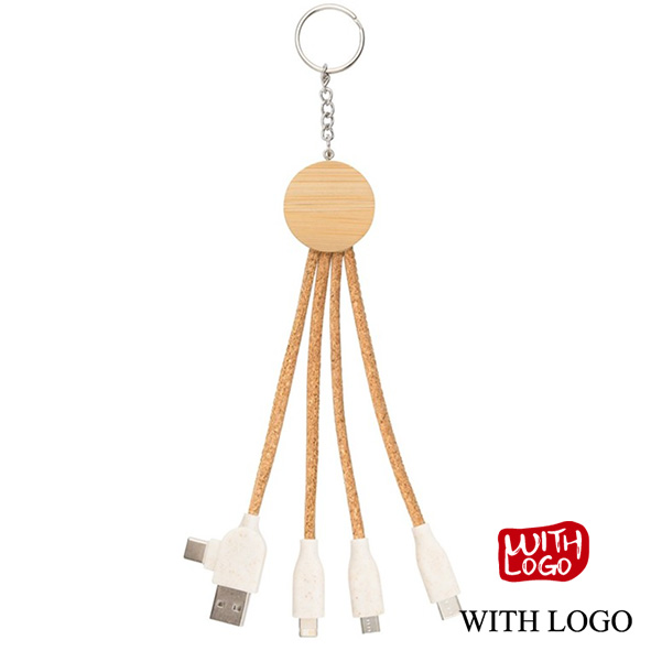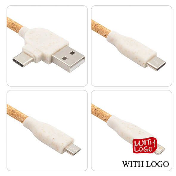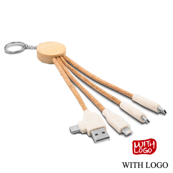 Cable de Carga Ecológico B’RIGHT – Corcho y Fibra de Trigo | 4 en 1 | 120 cm