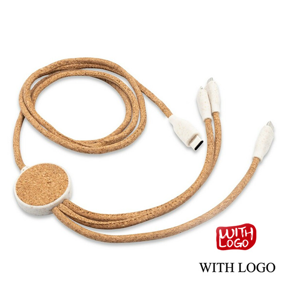 Cable de Carga Ecológico B’RIGHT – Corcho y Fibra de Trigo | 4 en 1 | 120 cm