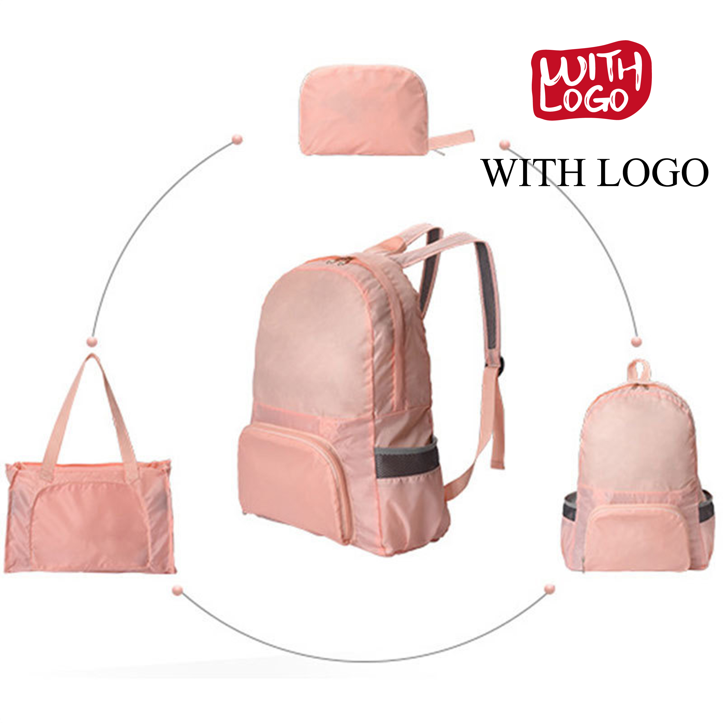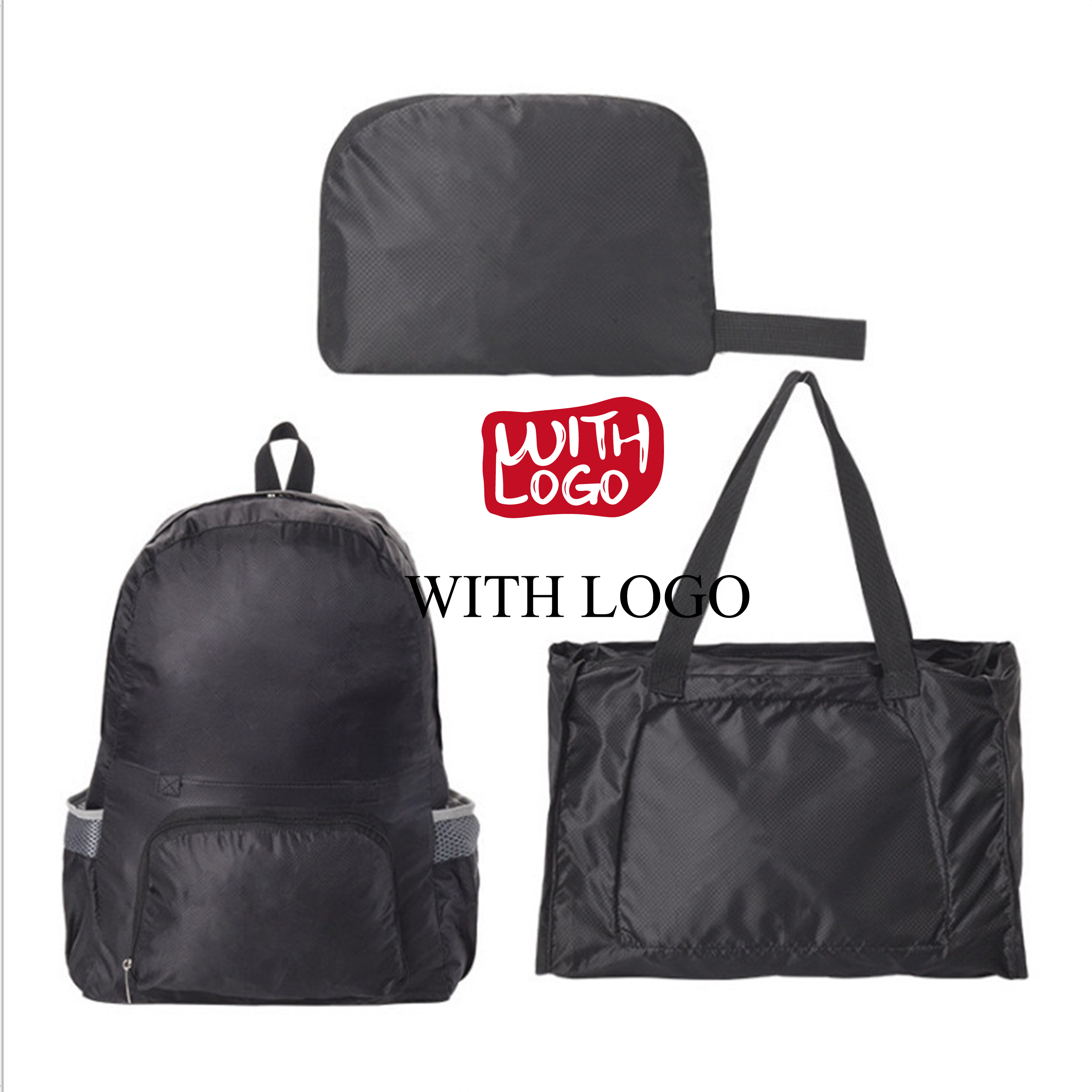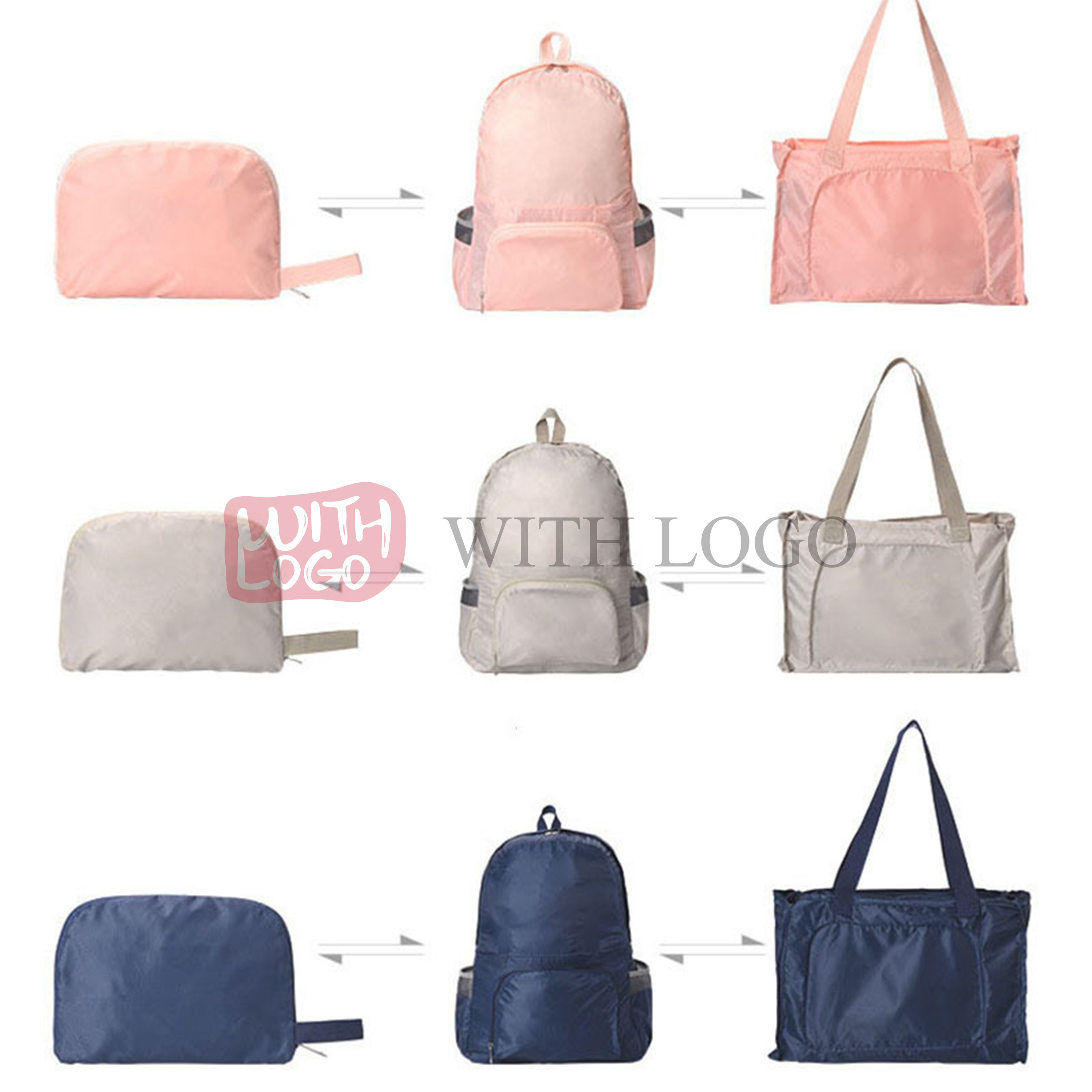 Bolsa plegable convertible personalizada en poliéster, ligera, resistente y perfecta para tus eventos.
