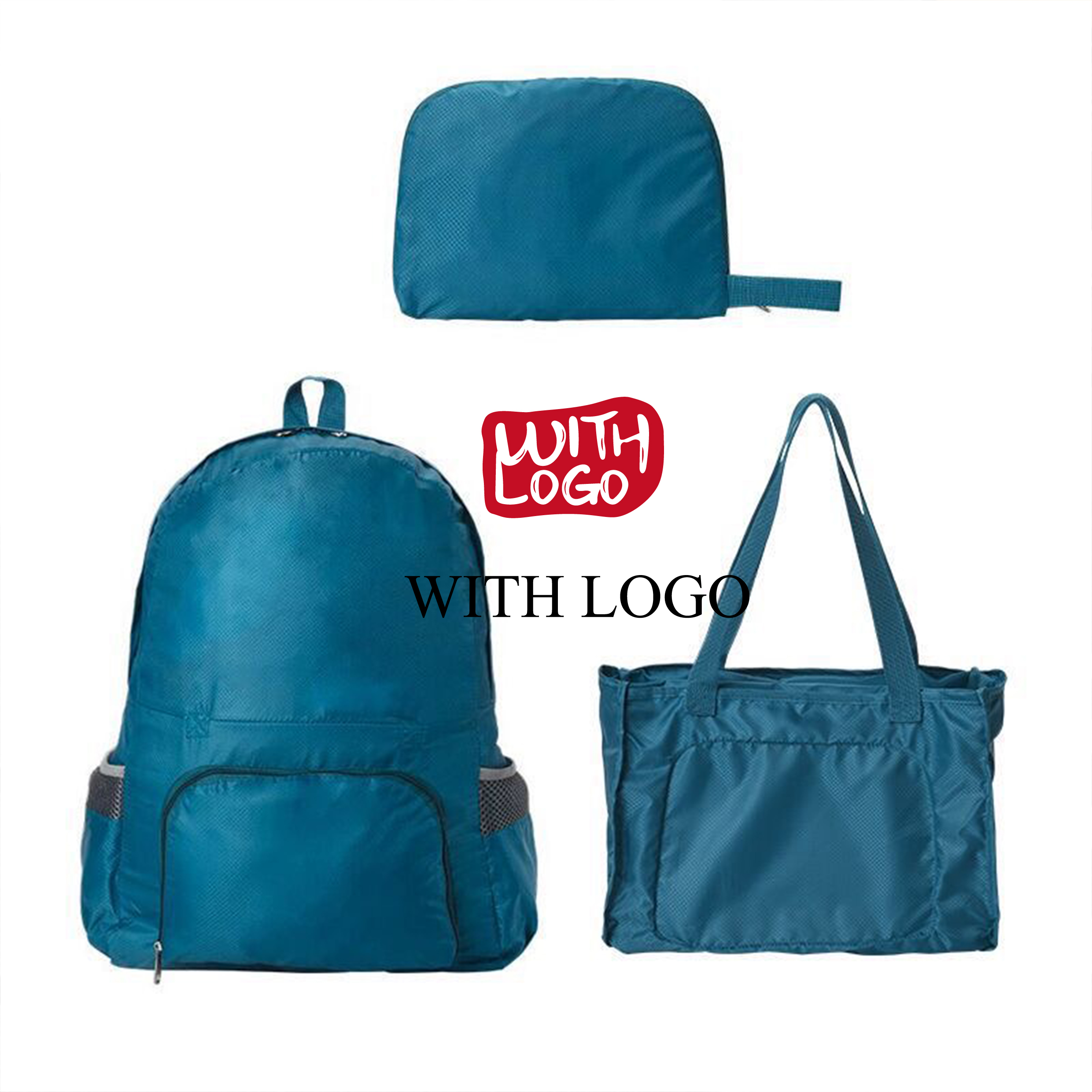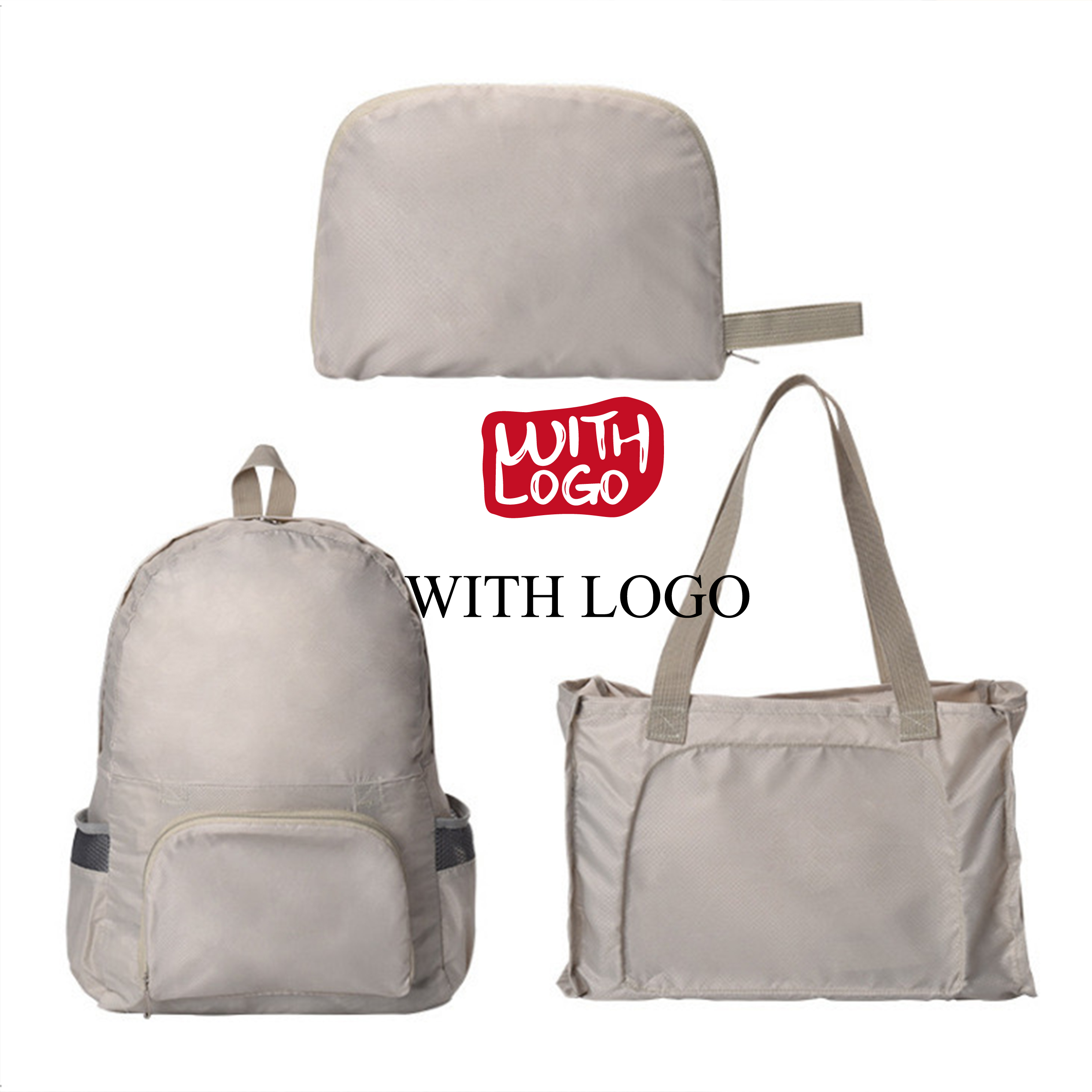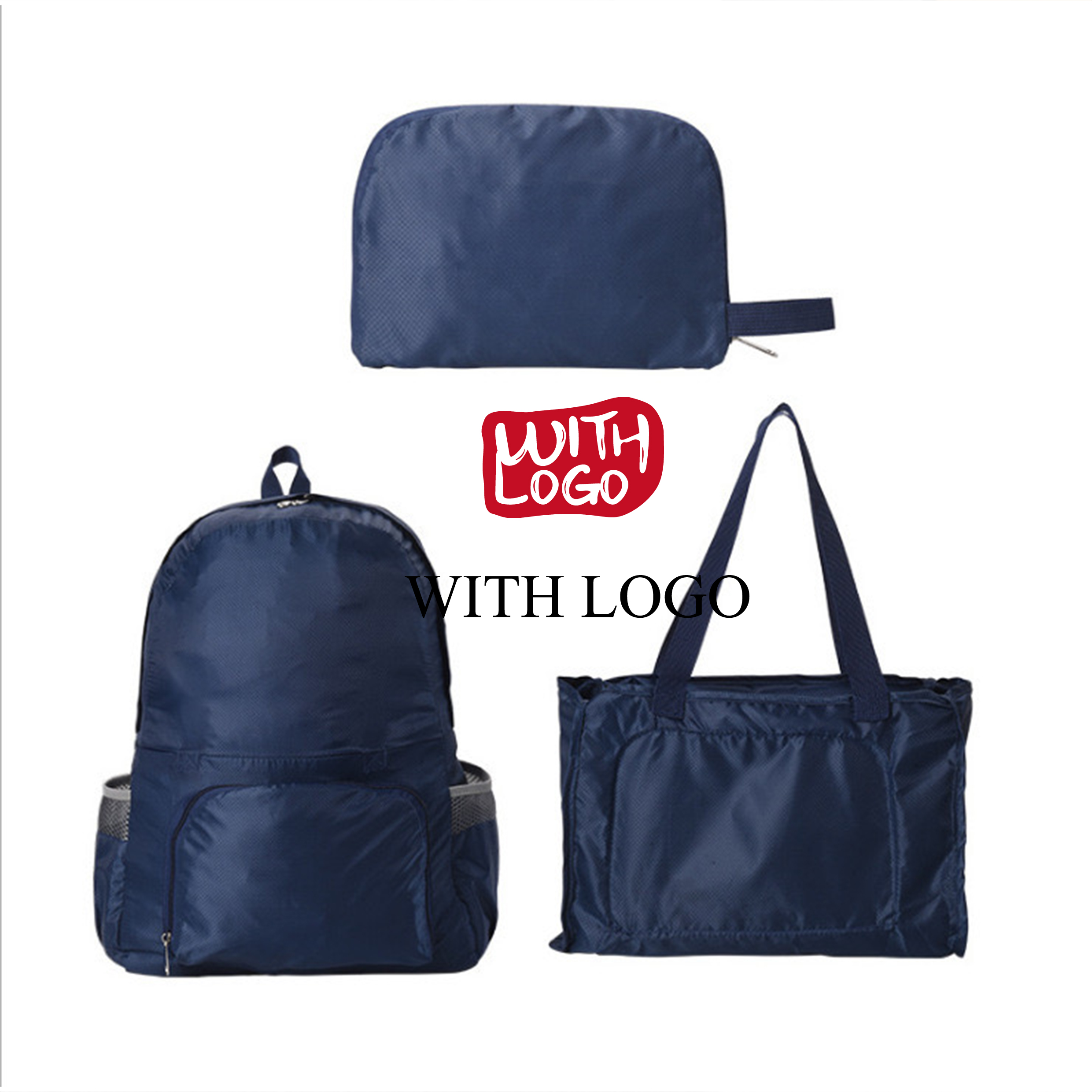 Bolsa plegable convertible personalizada en poliéster, ligera, resistente y perfecta para tus eventos.