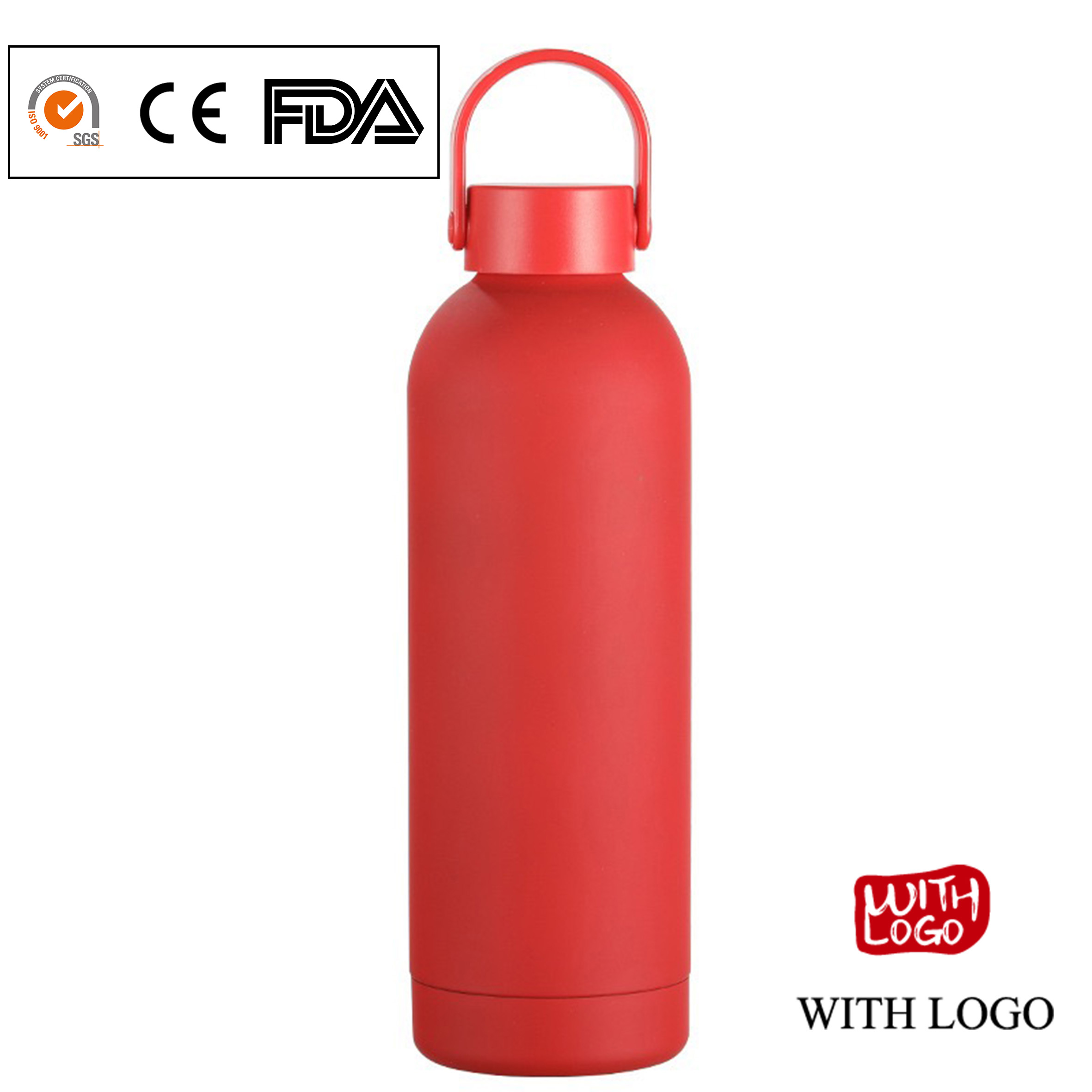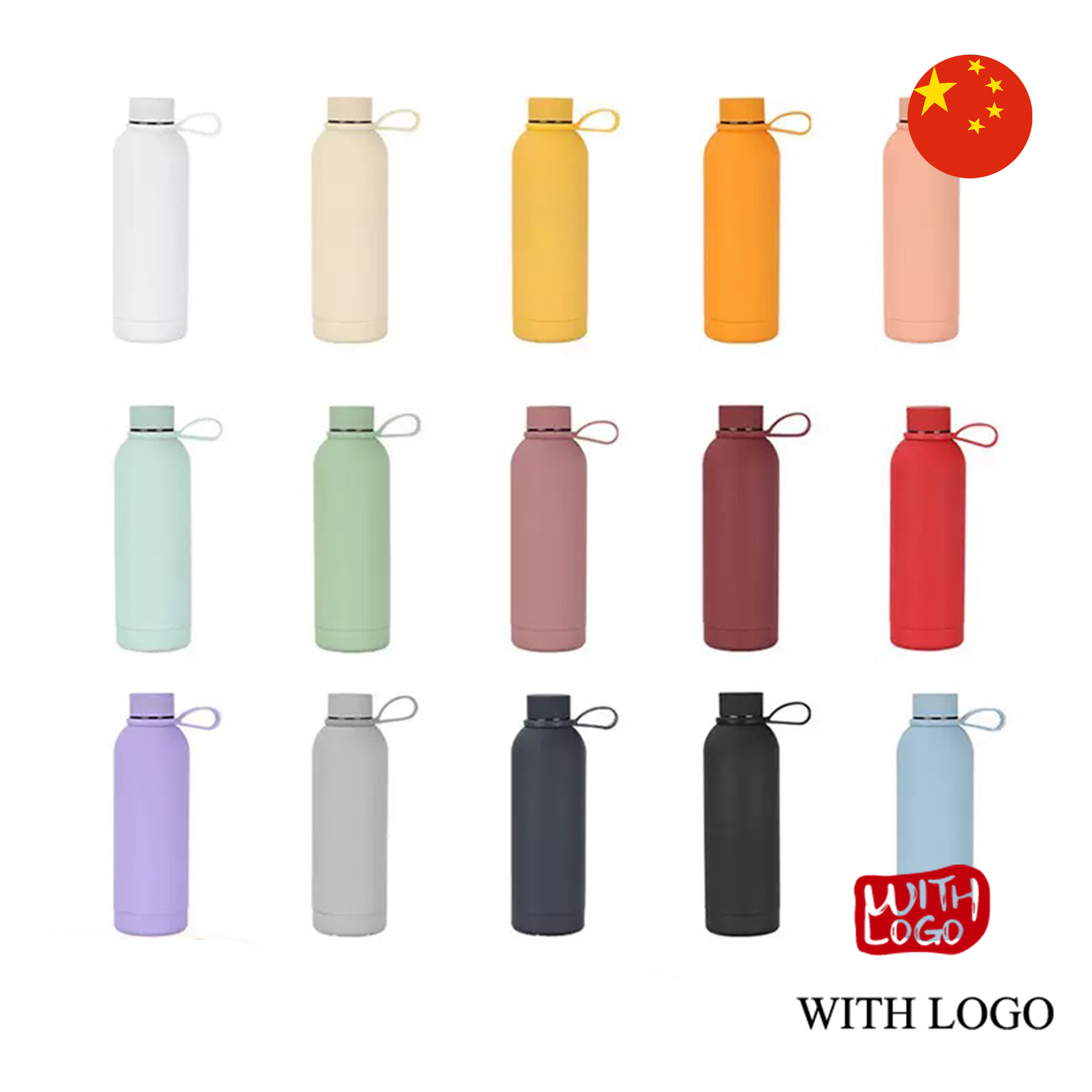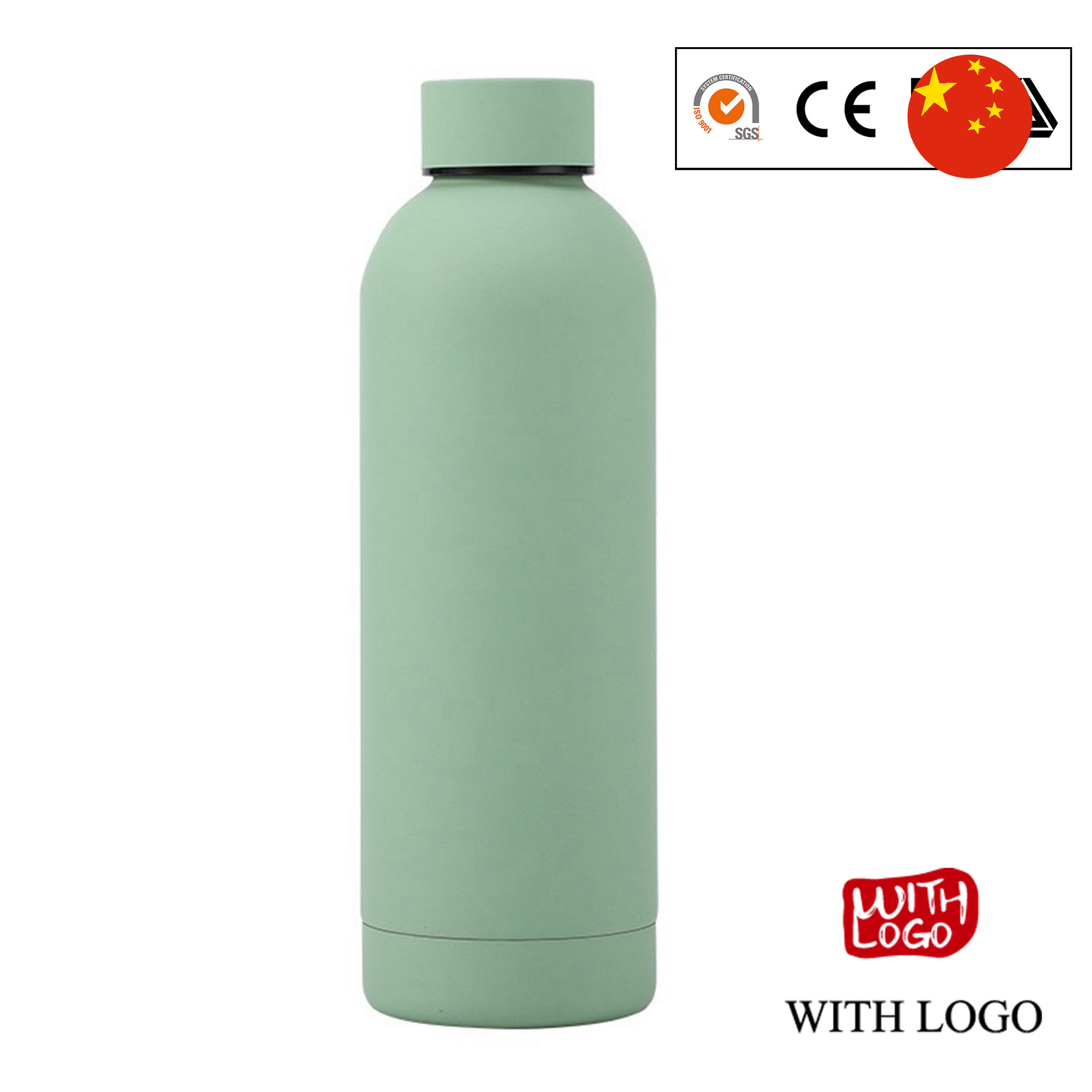 Botella térmica de acero inoxidable mate, 500 ml, ideal para logotipos y regalos corporativos.