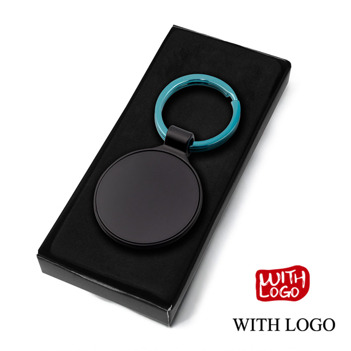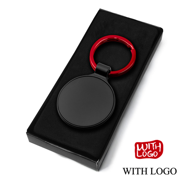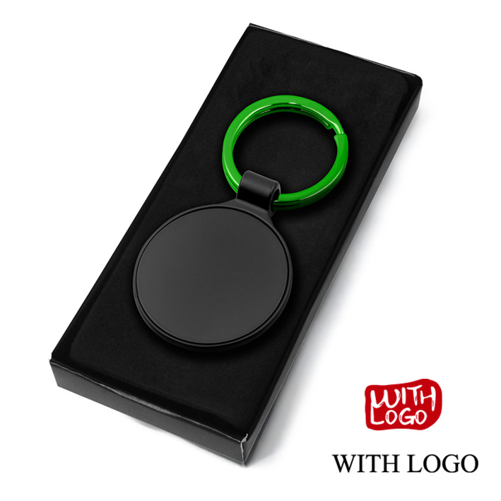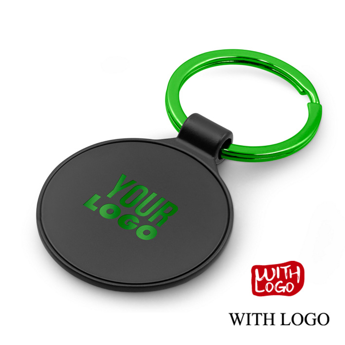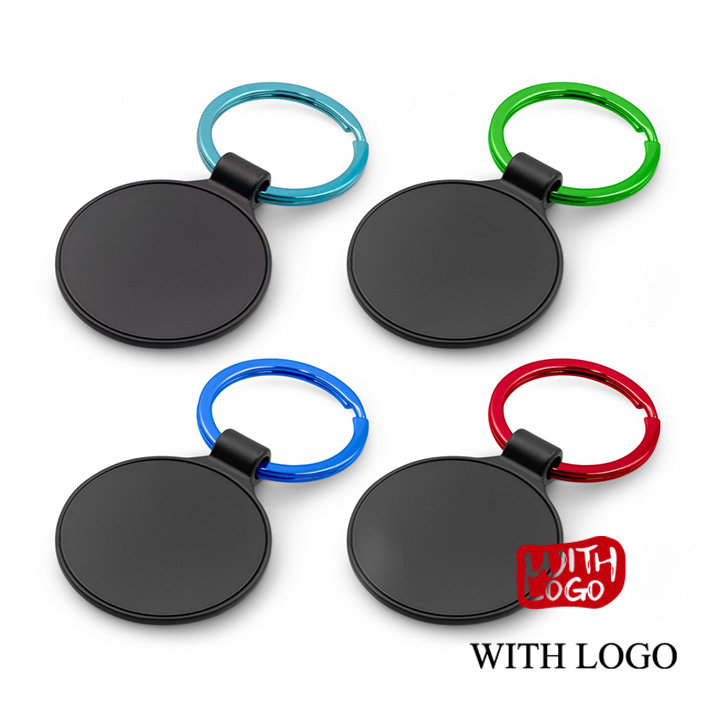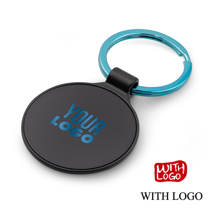 Llavero metálico elegante con aro de color y grabado láser, ideal para regalos de empresa y campañas promocionales.