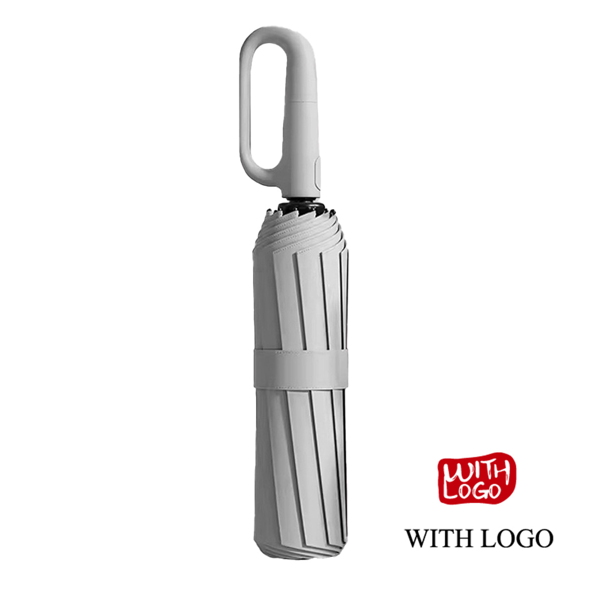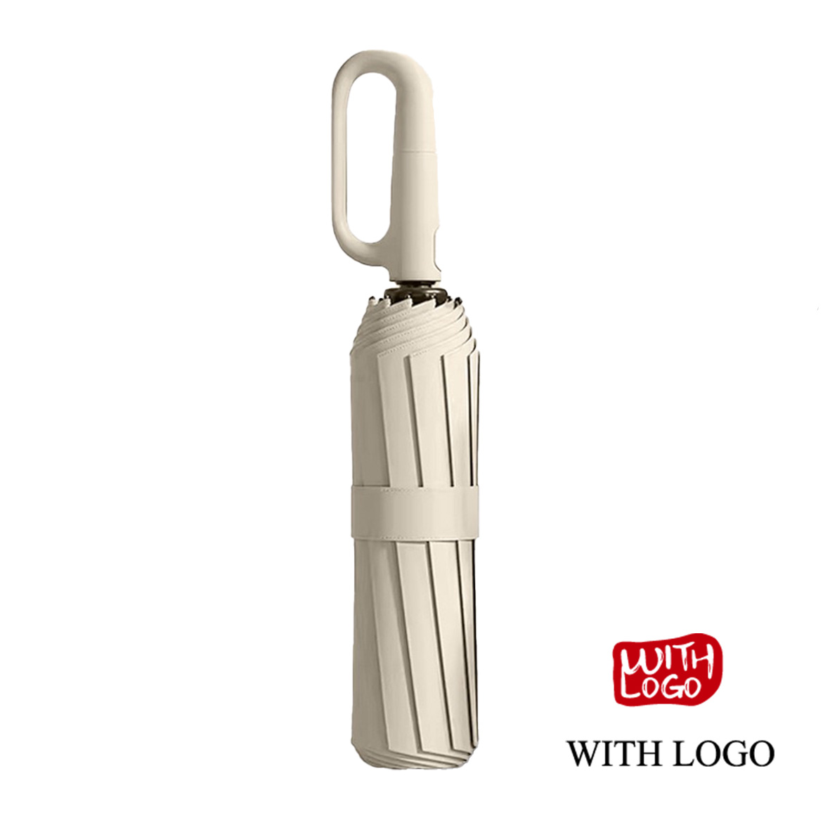 Paraguas Plegable Personalizado 23 Pulgadas 105cm – 10 Varillas de Fibra de Vidrio con Tela Black Coating y Mango con Anilla Mosquetón