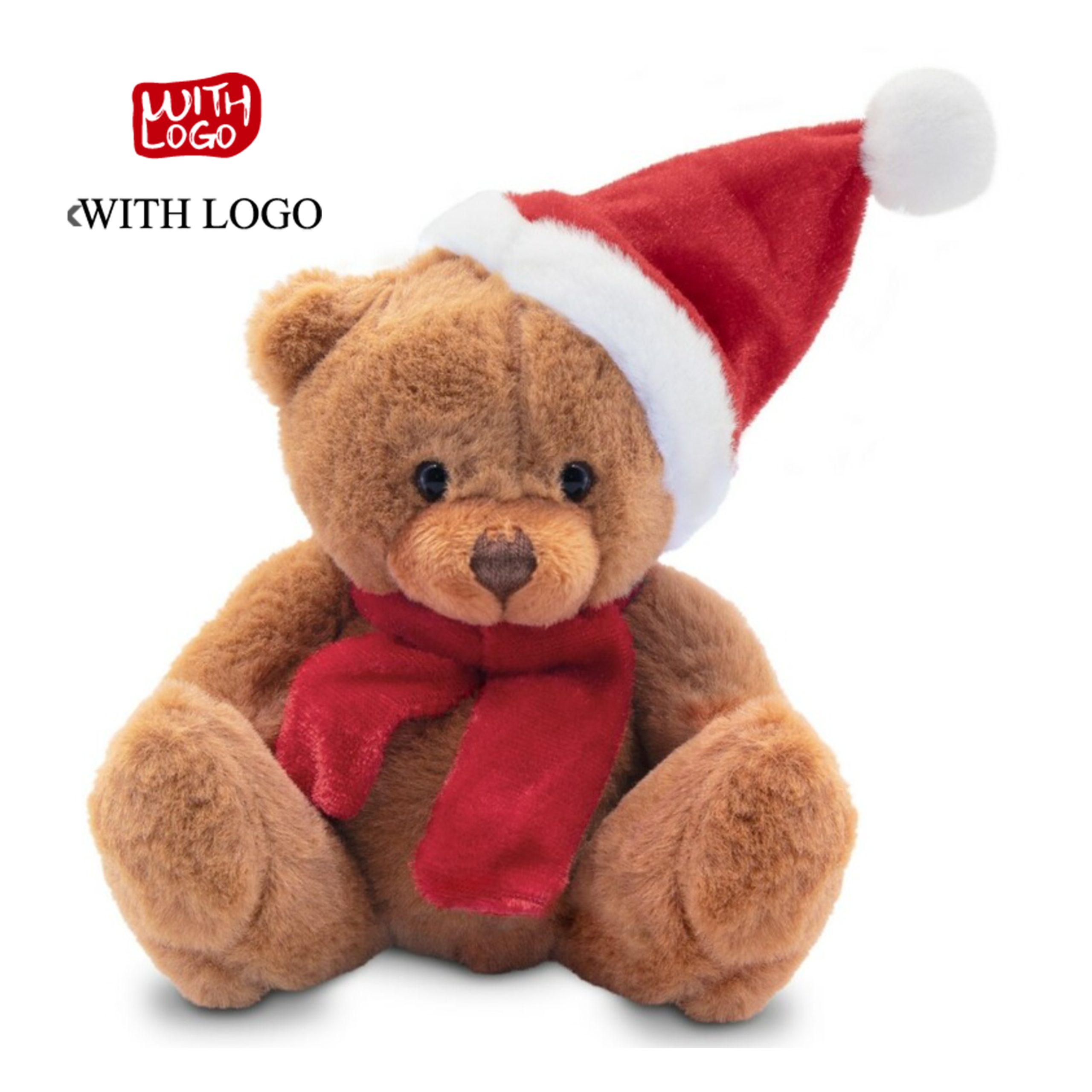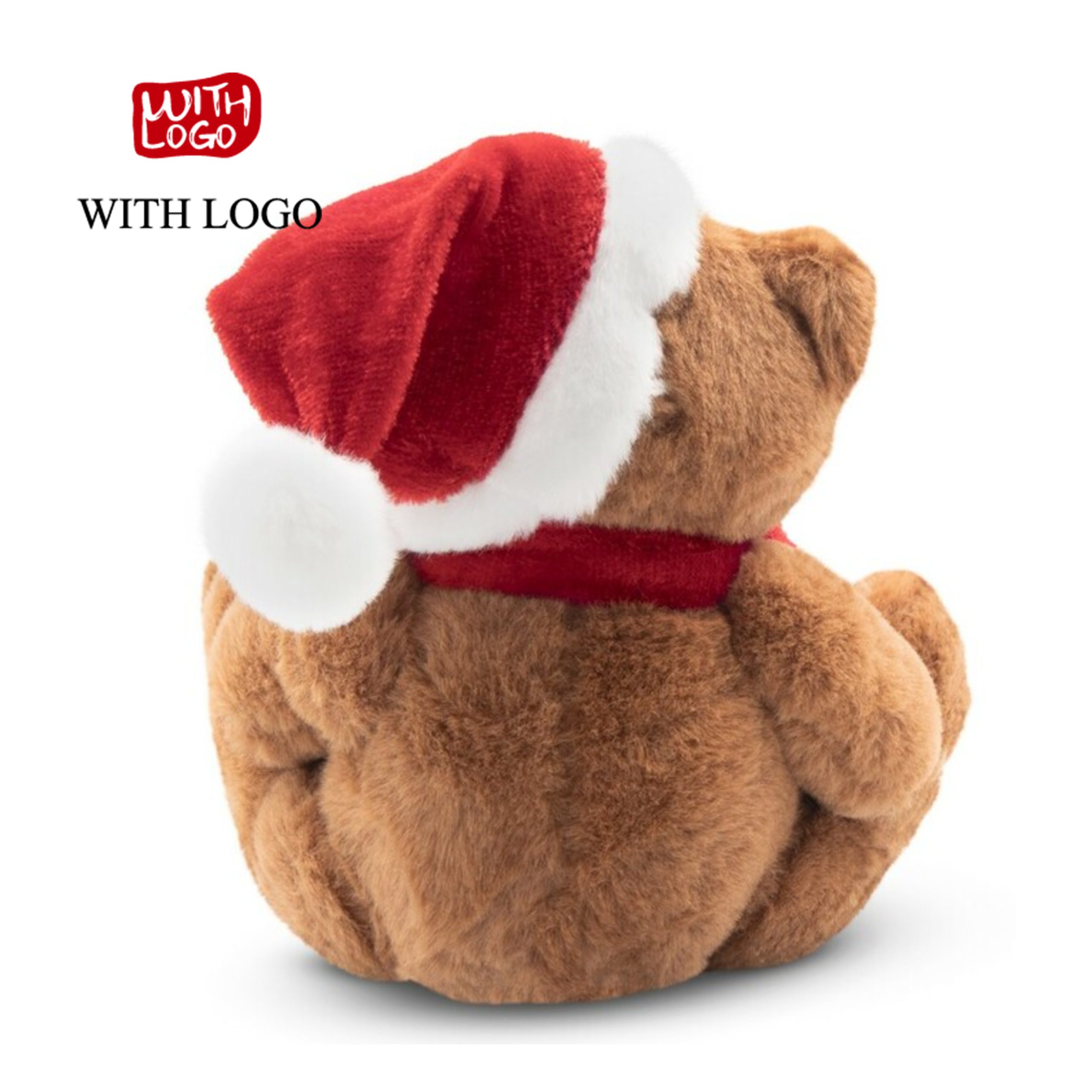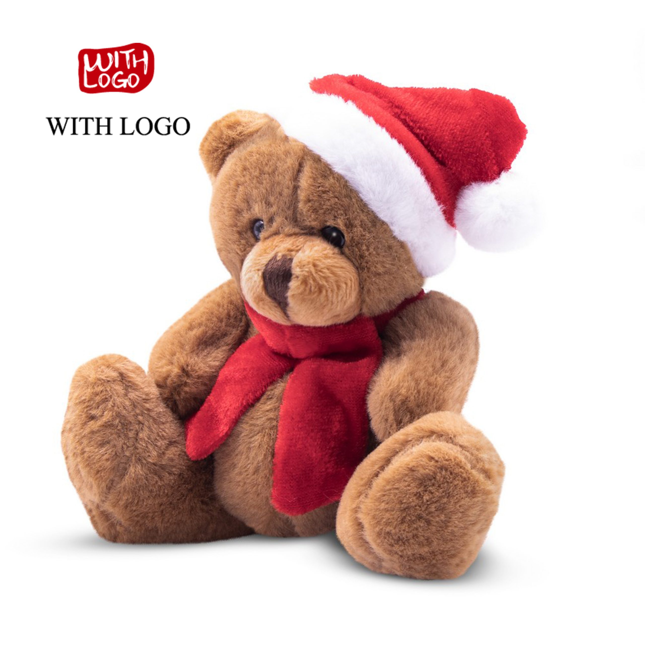Osito navideño suave, perfecto para regalos corporativos; impresión a todo color; seguro y festivo único.