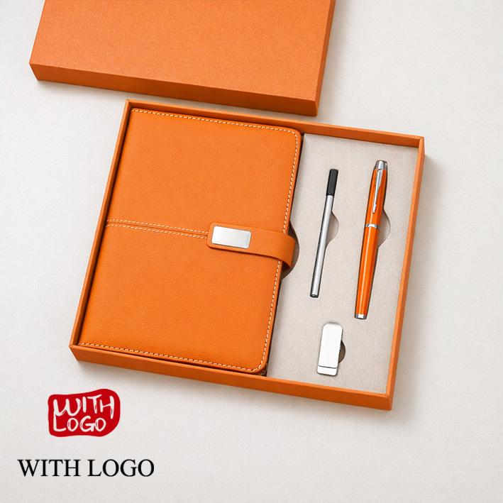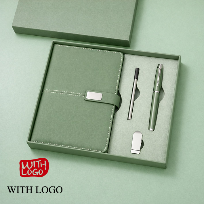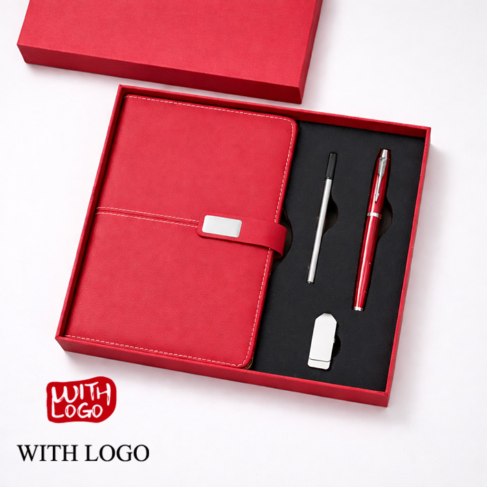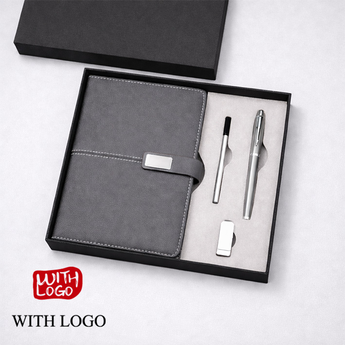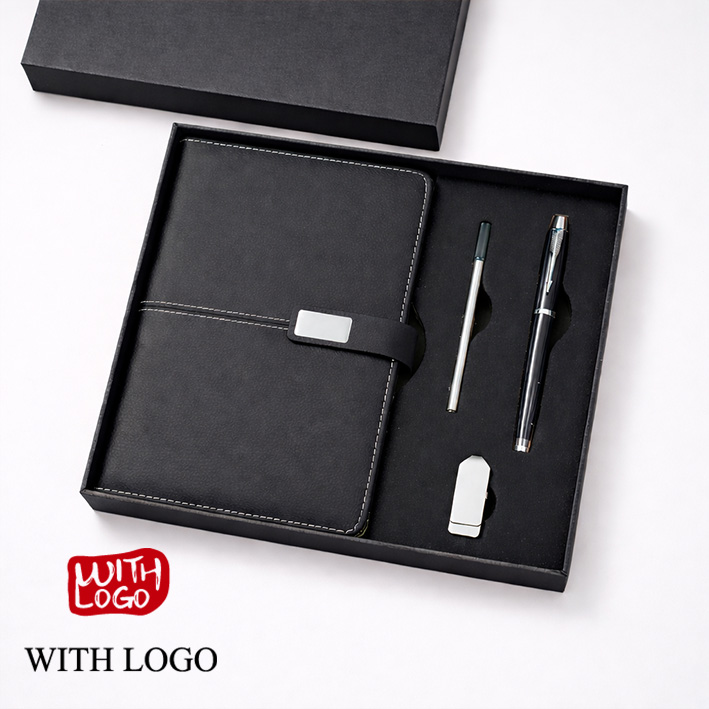 Set de Regalo Cuaderno, Bolígrafo y Memoria USB Personalizados – Caja Corporativa Premium